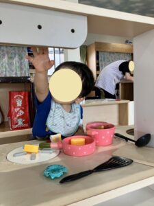 最近は「いらっしゃいませ~」と定員さんにもなりきっているお友だちです![]()