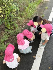 お散歩途中にかたつむりとてんとう虫を発見👀