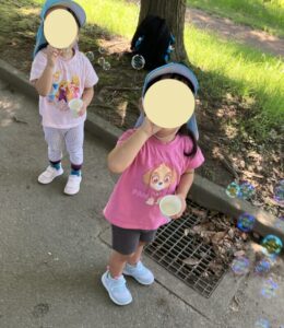 また江津湖の遊歩道にも行きました!木の木陰が涼しくしゃぼん玉でたくさん遊びました![]()