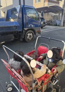 また、ひよこ組さんはカートやベビーカーに乗って保育園の周りのお散歩を楽しんでいます![]()